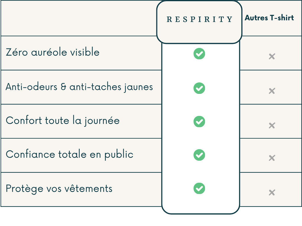 Contrairement aux t-shirts classiques, ils évitent les auréoles, les taches jaunes sous les bras et prolongent la durée de vie de vos hauts.